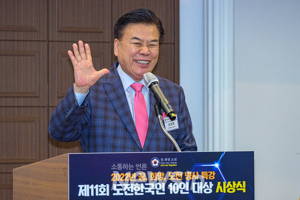 [뉴스인] 민경찬 기자 = 최창환 장수돌침대 창업자가 23일 오후 서울 중구 한국프레스센터 프레스클럽에서 열린 제11회 도전한국인 10인 대상 시상식에 앞서 "나는 오늘도 꿈★을 꾼다"라는 주제로 특강하고 있다.