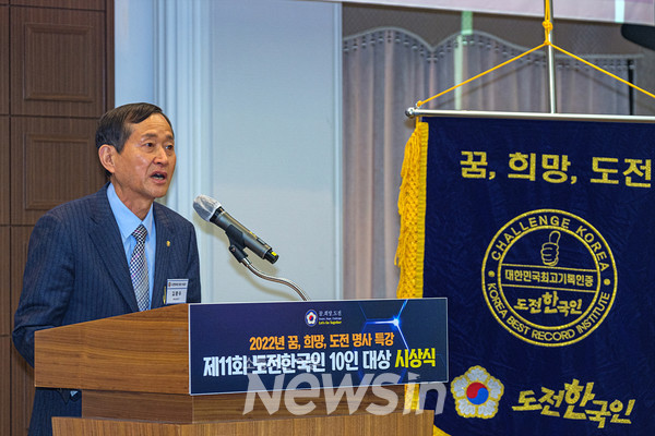 [뉴스인] 민경찬 기자 = 환경운동가 김완수 작가가 23일 오후 서울 중구 한국프레스센터 프레스클럽에서 열린 제11회 도전한국인 10인 대상 시상식에 앞서 "도전하는 자가 세상의 주인"이라는 주제로 특강하고 있다.