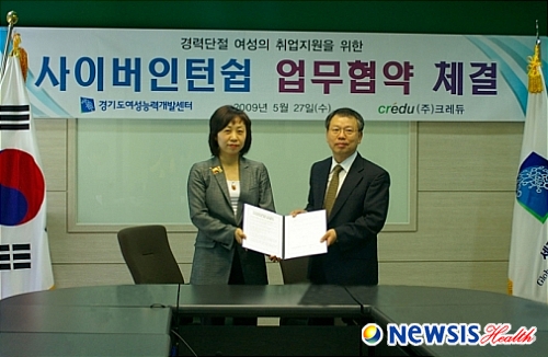 이번 협약으로 경기도여성능력개발센터는 경기여성e-러닝센터 회원들에게 무료 제공되고 있는 온라인교육을 통해 사이버인턴쉽 운영에 필요한 인력을 양성할 수 있게 됐다.