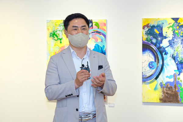 [뉴스인] 민경찬 기자 = 6일 오후 서울 종로구 인사동 인사아트갤러리(관장 허성미) 4층 전시장에서 동양화가 강민혜의 개인전 '과거와 현재의 지도에서 길찾기'가 열려 후원회장인 김성환 (주)21세기 대표가 축사하고 있다.