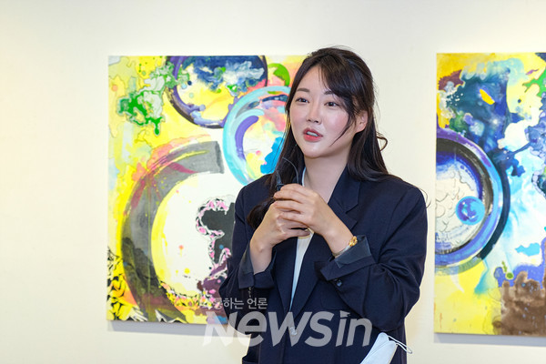 [뉴스인] 민경찬 기자 = 동양화가 강민혜가 6일 오후 서울 종로구 인사동 인사아트프라자갤러리(관장 허성미) 4층 전시장에서 개인전 '과거와 현재의 지도에서 길찾기'를 열고 인사말을 하고 있다.