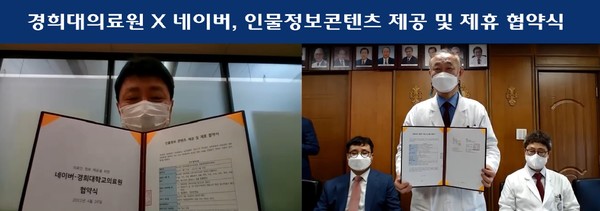 [뉴스인] 조진성 기자 = 경희대학교의료원(의료원장 김기택, 경희의료원/강동경희대학교병원)은 네이버(주)(대표 최수연)와 지난 28일 인물정보서비스 제휴에 관한 비대면 업무 협약식을 진행했다고 29일 밝혔다.