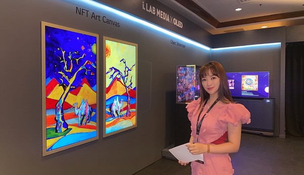 지난 8일~10일(현지시각) 미국 라스베이거스 컨벤션센터에서 열린 ‘인포콤 2022 커넥티드’의 LG디스플레이 ‘아트 캔버스’ 전시행사에 참가한 윤송아는 화제작 낙타 시리즈 ‘낙타의 해, 낙타의 달’을 직접 설명하는 시간을 가졌다.