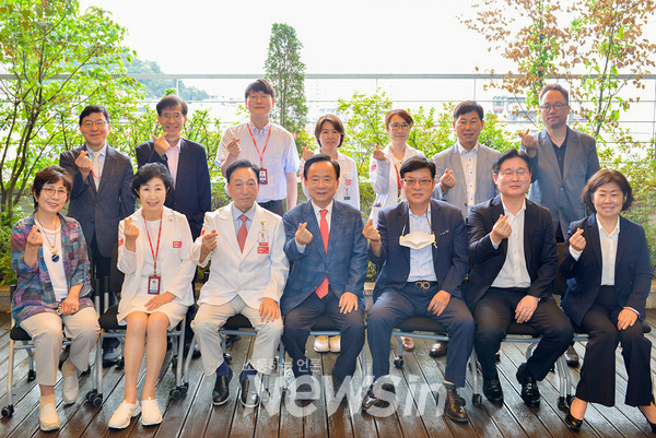 [뉴스인] 민경찬 기자 = 에이치플러스 양지병원 김철수 이사장(왼쪽 세 번째)와 연세대학교 행정대학원 총동창회 이주영 회장(가운데)이 지난 1일 병원 세미나실에서 협력 의료기관 협약을 체결한 후 관계자들과 기념 촬영을 하고 있다.