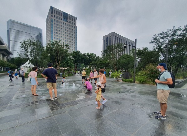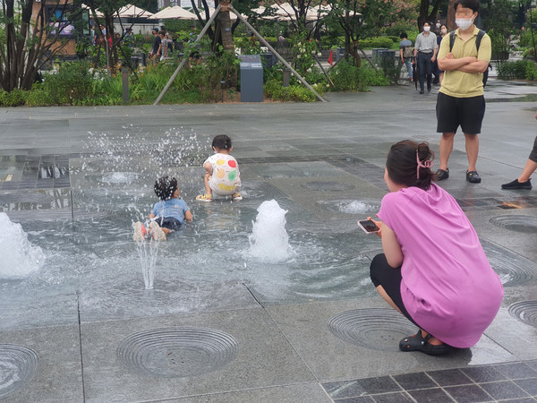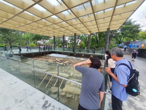 이순신 동상 앞을 거니는 외국인 관광객, 분수대에서 물을 맞으며 노는 어린이들, 유물이 발견된 장소를 구경하는 시민 등 광장은 남녀노소로 북적였다.