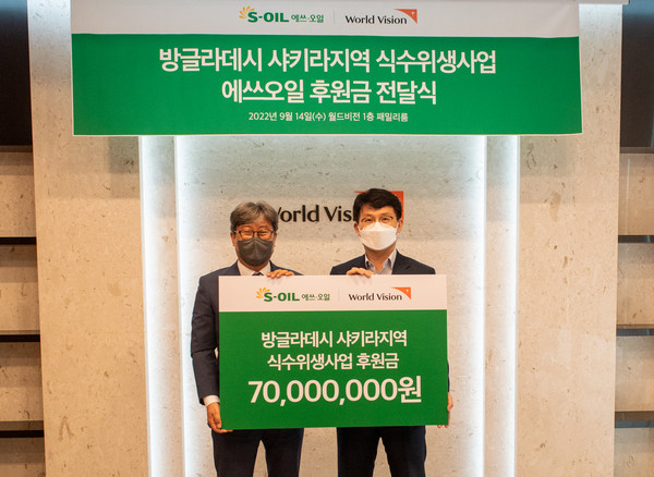[뉴스인] 조진성 기자 = S-OIL(대표: 후세인 알 카타니)은 지난 14일 서울 영등포 월드비전 본부에 방글라데시 식수 위생사업 후원금 7천만원을 전달했다고 15일 밝혔다.