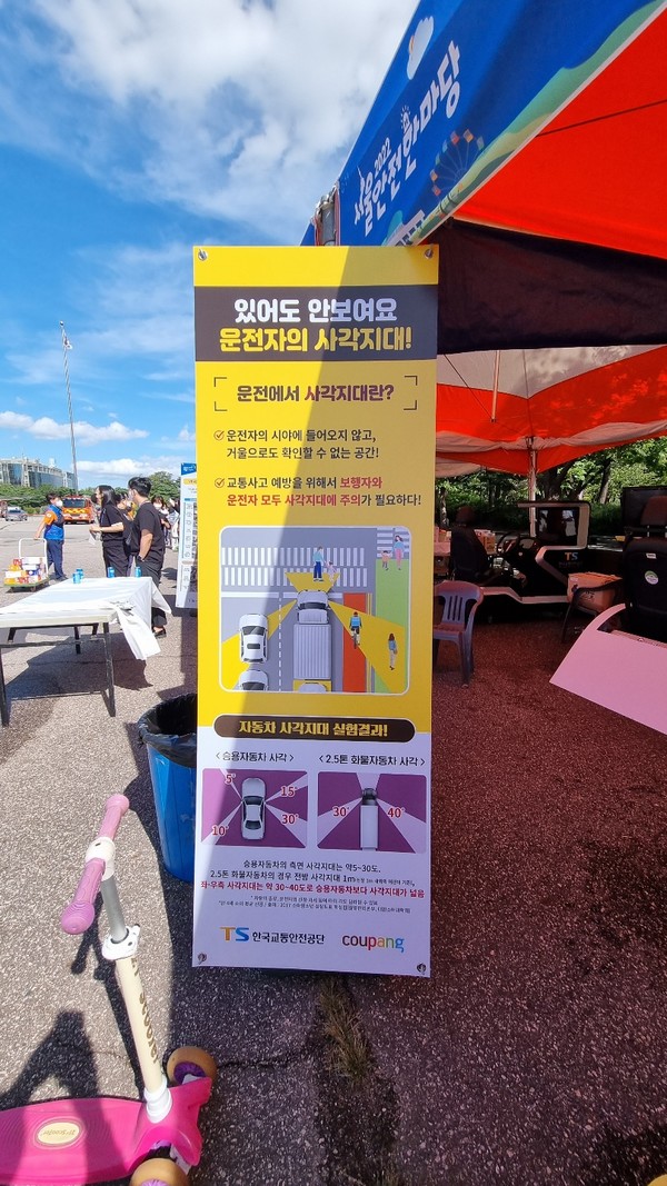 [뉴스인] 이재영 기자= 한국교통안전공단 서울본부는 지난 22일부터 24일까지 화물차 사각지대 교통사고 감소를 위해 쿠팡과 함께 서울안전한마당에서 사각지대 체험 부스를 운영한다고 밝혔다.