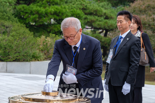 [뉴스인] 민경찬 기자 = 미주한인회총연합회가 2일 오전 서울 동작구 국립서울현충원을 방문해 국승구 총회장을 비롯한 미주지역 회장단이 현충탑에 참배하고 있다