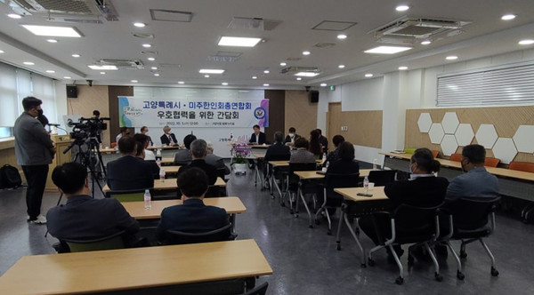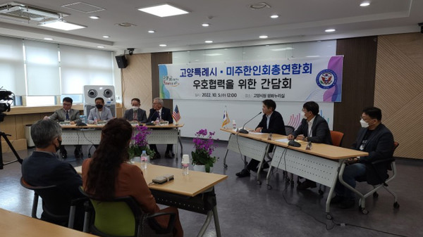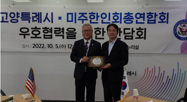 [뉴스인] 김태엽 기자 =고양시는 5일 시청 본관 2층 평화누리실에서 미주한인회총여너합회(국승구 회장)와 미주지역과 국제교류 경제 발전을 위한 간담회 이후 이동환 고양특례시장과 오찬 자리를 함께 했다.