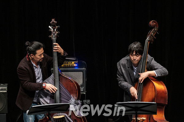[뉴스인] 민경찬 기자 = 29일 오후 인천 부평아트센터 달누리극장에서 색깔있는 재즈 다섯 번째 '재즈 베이스 페스티벌'이 열려 베이시스트 김성수(왼쪽)와 김호철이 연주하고 있다.