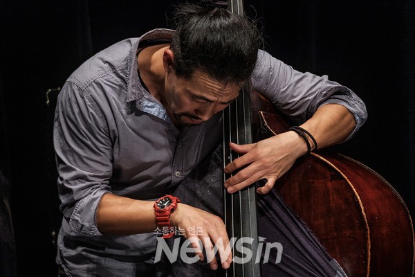 [뉴스인] 민경찬 기자 = 29일 오후 인천 부평아트센터 달누리극장에서 색깔있는 재즈 다섯 번째 '재즈 베이스 페스티벌'이 열려 베이시스트 김성수가 연주하고 있다.