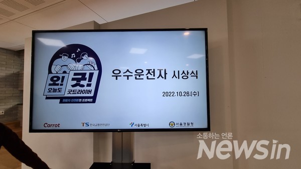 [뉴스인] 이재영 = 한국교통안전공단 서울본부(본부장 배중철)는 10월 26일 서울기록원 컨퍼런스홀에서 ‘오늘도 굿 드라이버(이하 오굿 프로젝트)’ 진행에 따라 우수 운전자로 선정된 이들에 대해 시상식을 개최했다고 밝혔다. 행사에는 수상자와 가족들이 참석했으며 서울특별시장상 3명, 서울경찰청장상 3명, 한국교통안전공단 이사장상 5명, 캐롯손해보험 대표이사상 5명 등 총 16명이 수상의 영광을 안았다.