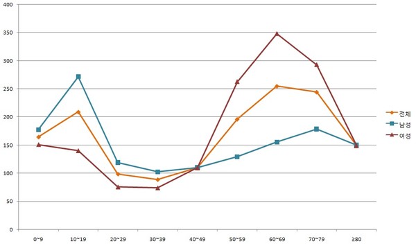 연구팀은 2009년부터 2018년까지 국민건강보험공단에 등록된 발목 골절 환자 79만4312명을 분석했다. 분석결과 이 기간에 연평균 10만명당 159명이 발목 골절을 당했고, 발목 골절 발생률은 2009년 10만명당 130명에서 2018년 172명으로 32% 증가했다. 성별로는 여성이 10만명당 168명으로 남성 10만명당 150명보다 다소 높았다.
