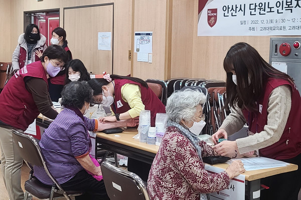 김영훈 고려대 의무부총장 겸 의료원장은 “고려대안산병원이 위치한 지역에서 어르신들을 위한 진료봉사에 나설 수 있게 돼 매우 뜻깊게 생각한다”며 “건강지킴이로서 연말에 따뜻한 온기를 전할 수 있는 기회를 함께 만들어주신 고려대의료원 헬스케어퓨처포럼 최고위과정 모든 멤버들께도 진심으로 감사드린다”고 말했다.