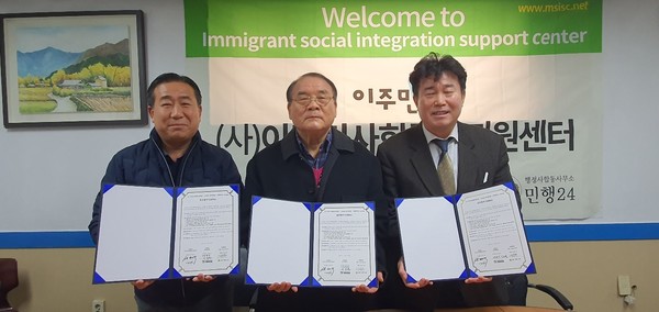 [뉴스인] 조진성 기자 =법무부 비영리공익법인 사단법인 이주민사회통합지원센터(이사장 신태식)은 지난 12월8일 본사 회의실에서 사단법인 벤처한림회(이사장 조완규)와 업무협약식을 갖고 이주민들의 국내정착과 사회적통합을 위해 적극 협력하기로 했다.