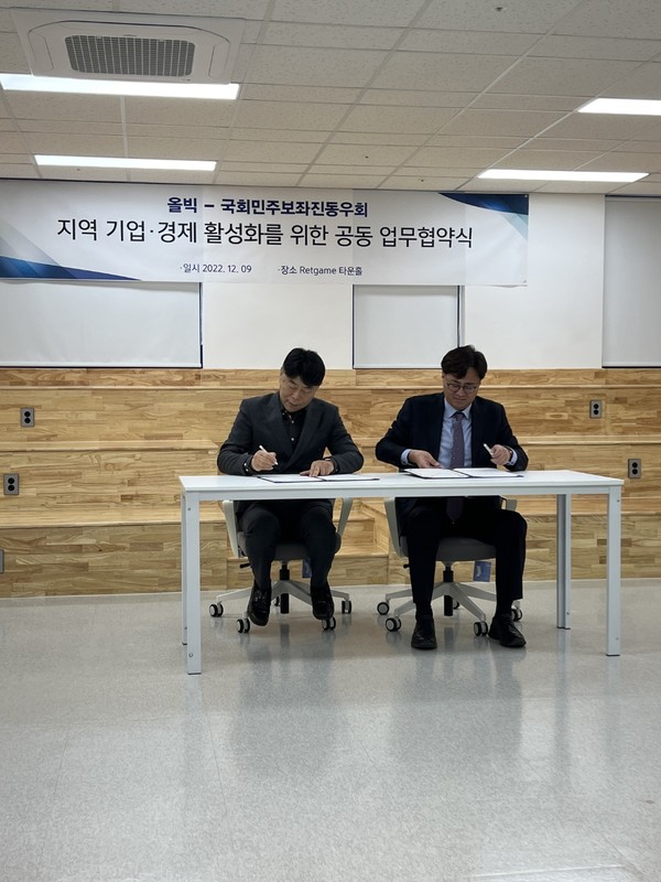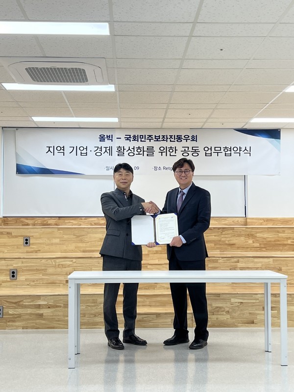[뉴스인] 조진성 기자 = 국회민주보좌진동우회(민동포럼) 양시헌 회장과 농업회사법인㈜올빅(올빅) 하동욱 대표는 9일 서울시 강남구 소재 우정빌딩 타운홀에서 협약식을 가졌다.