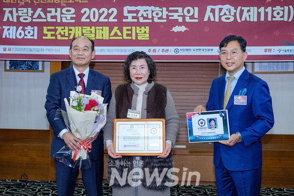 [뉴스인] 민경찬 기자 = 낙지볶음 개미집 안경희 대표(가운데)가 20일 오후 서울 중구 한국프레스센터 외신기자클럽에서 제11회 대한민국 도전한국인 시상식 '장한 어머니 대상'을 받은 후 기념 촬영을 하고 있다.