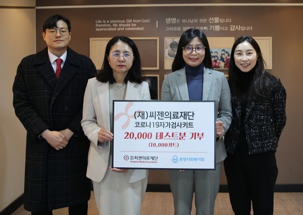 [뉴스인] 조진성 기자 = 동방사회복지회는 지난 22일 질병검사 전문의료기관 (재)씨젠의료재단(이사장 천종기)과 코로나19 자가검사키트 20,000 테스트분에 대한 전달식을 진행했다고 밝혔다.