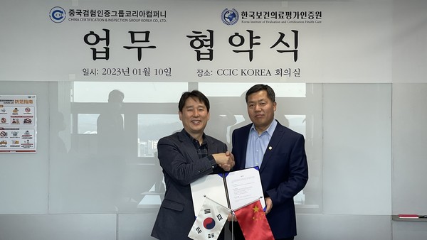 [뉴스인] 조진성 기자 = 한국보건의료평가인증원과 중국검험인증그룹코리아컴퍼니(CCIC KOREA)21가 지난 10일 CCIC KOREA 회의실에서 공동 발전을 위해 상호 존중와 신뢰를 바탕으로 외국인 의료고객의 안전한 의료서비스 제공을 위한 업무협약(MOU)을 체결했다고 11일 밝혔다.