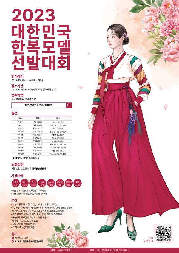 2023 대한민국 한복모델 선발대회 조직위원회는 “명실상부 대한민국 대표 국민대회로서 세계 패션 수도로 불리는 프랑스 파리와 우리나라 전국에서 개최되는 ‘대한민국 한복모델 선발대회’가 4월부터 국내외 압도적 최대규모로 개최된다“고 밝혔다