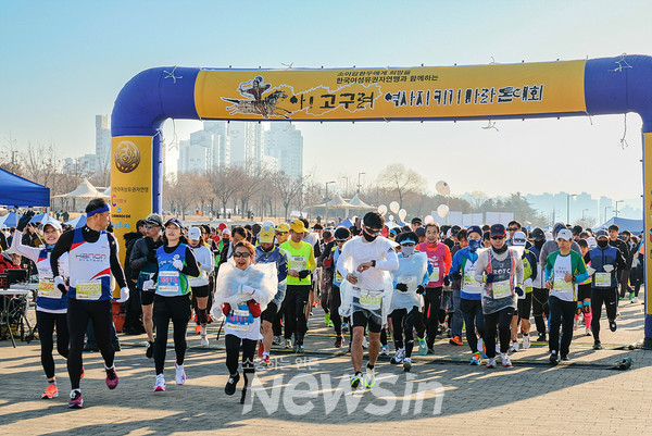 [뉴스인] 민경찬 기자 = 26일 오전 서울 뚝섬한강공원 수변 마당에서 '소아암 환우에게 희망을! 한국여성유권자연맹과 함께하는' 제17회 '2023 아! 고구려 역사지키기 마라톤대회'가 열려 풀코스 C조 참가자들이 출발하고 있다.