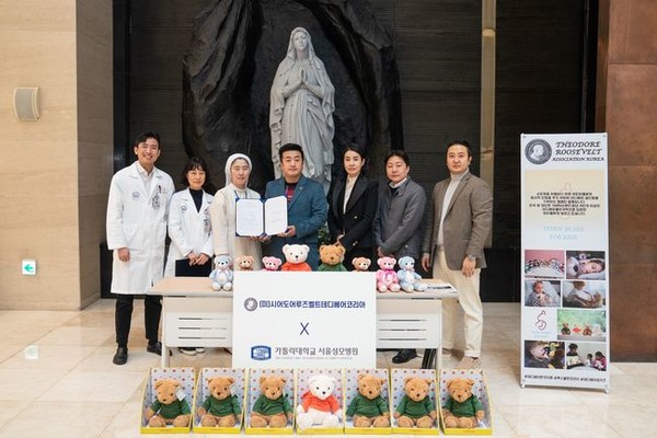 [뉴스인] 조진성 기자 = 미국 루즈벨트 테디베어 재단 한국지회(지회장 권순우)가 가톨릭대학교 서울성모병원 과 '테디베어포키즈캠페인'을 진행하기 위해 후원 협약식을 체결했다고 8일 밝혔다.