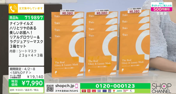 이에 따라 숍채널 담당자로부터 하루 3번 편성하는 특별한 형식인 GGV와 SSV를 제안받았다. 숍채널 인기 브랜드만 선별하여 제안하는 형식이다. 또한 새로 런칭 된 저분자 발효 오일 앰플인 더블 드롭 앰플은 정식 판매 전 사전 주문만으로 큰 관심을 받으며 주문이 밀려들었다. 나인테일즈의 일본 공식 수입사인 A사 관계자는 “별도로 홍보하지 않았는데도 인기가 굉장하다. 마스크와 함께 사용하였을 때 시너지 효과가 큰 것이 판매량 증가에 기여한 것으로 보인다”고 말했다.