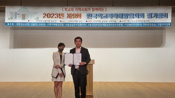 한국학교폭력예방협의회 이지흔 회장은 "가정의달 5월에 무엇보다 큰 의미가 있는 제 9회 정기총회 및 시상식을 가지게 됐다"며 "오늘 뜻깊은 자리를 마련해 주신 윤상현 국회의원과 귀한 발걸음을 해주신 소중한 한분 한분께 감사드린다. 요즘 학교폭력이 또다시 이슈가 되고 있는데 캠페인과 인성교육 등을 통해 앞으로 학교 폭력예방을 위해 열심히 뛰겠다"고 밝혔다.