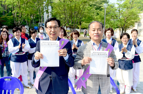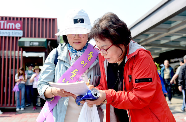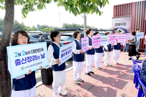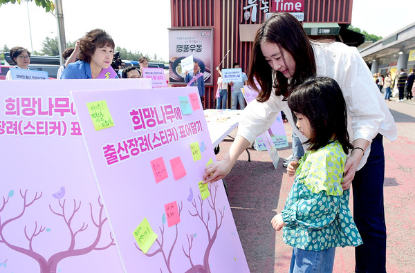 이어 참석자들은 다음 행선지인 천안논산고속도로 정안알밤(하)휴게소로 이동해 휴게소 방문자들을 대상으로 출산장려 서명 받기와 출산장려 글 남기기 (스티커 부착) 등 출산장려 캠페인을 진행했다.