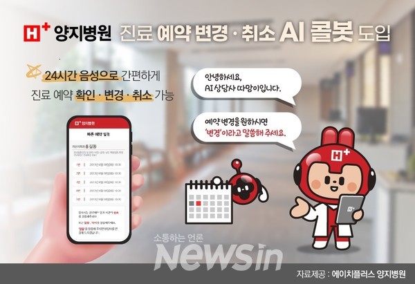 [뉴스인] 민경찬 기자 = 에이치플러스(H+) 양지병원(병원장 김상일)이 AI 기반 진료예약상담 ‘콜봇 솔루션’을 도입했다고 16일 밝혔다.