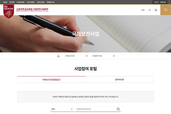 [뉴스인] 조진성 기자 = 고려대학교의료원(의무부총장 겸 의료원장 윤을식)이 6월 27일(화) ‘국제보건사업 참여 포털’을 공개했다.