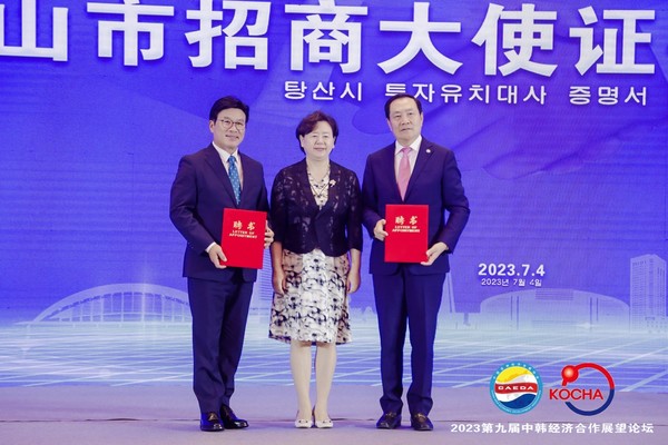 한중 우호증진과 경제무역협력을 통한 공동이익창출 지원을 위한 탕산시 인민정부 경제문화대사에 지영모 한중경제포럼이사장과 취안순지 중국아주경제발전협회 회장이 임명장을 받았다.