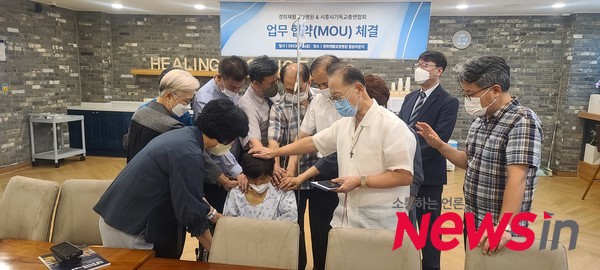 이날 체결 식에는 경희재활요양병원 이금자 이사장을 비롯한 시흥시기독교총연합회(이하 시기총) 지광식 총회장(성천감리교회) 등 관계자 20여명이 참석하였다.