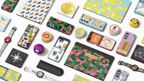삼성전자는 모바일 액세서리 업체 슬래시비슬래시(Slash B Slash)와 협력해 ▲토일렛페이퍼 ▲키스 해링 ▲스마일리 등 인기 작가의 작품과 캐릭터, K팝 관련 ▲BTS 다이너마이트 ▲스트레이 키즈 등 8개 IP(지적재산권)를 적용한 55종의 액세서리를 국내에 선보인다.