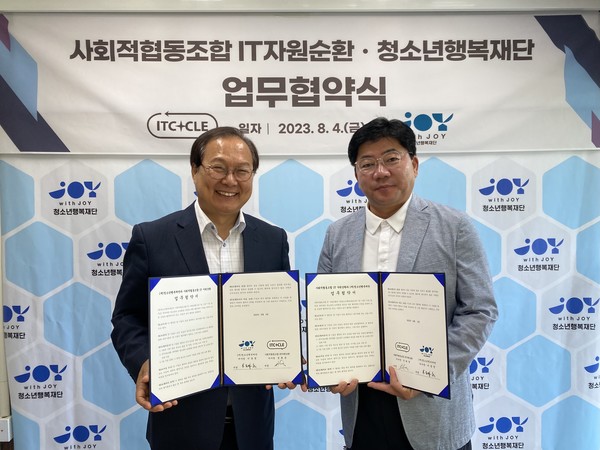 협약식에 참석한 사회적협동조합 IT자원순환 정희준 이사장은 “청소년행복재단과 업무협약을 통해 자원순환의 활성화와 취약계층 청소년의 교육환경 개선이라는 두 마리 토끼를 잡은 것 같아 기쁘게 생각한다. 앞으로 청소년행복재단과 함께 더 많은 청소년들이 마음껏 공부할 수 있도록 노력하겠다”고 전했다.