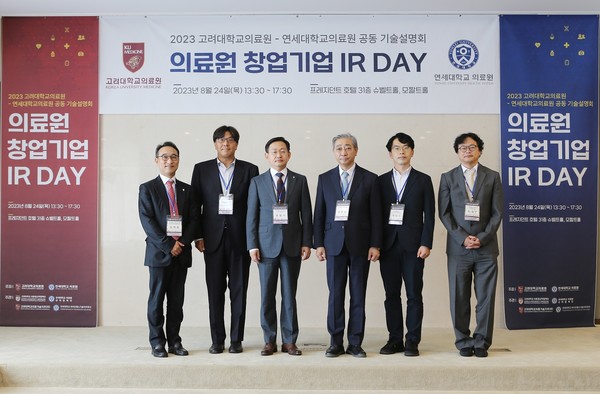 이번 공동 기술설명회는 윤을식 고려대학교 의무부총장, 윤동섭 연세대학교 의무부총장, 김학준 고려대 의학연구처장 겸 의료원산학협력단장, 최재영 연세대 의과학연구처장 겸 산학협력단장 등 양 기관의 주요 보직자 및 바이오헬스 산업 분야 전문가와 관계자들이 참석한 가운데 이뤄졌다.