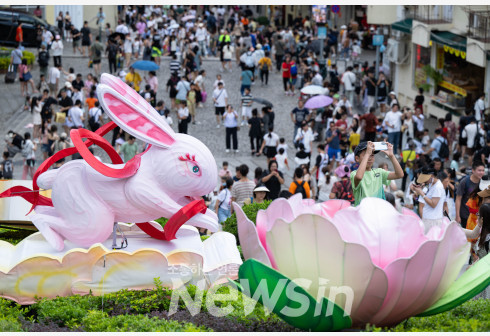 [뉴스인/신화통신] 민경찬 기자 = 28일(현지 시간) 중국 마카오의 성 바오로 성당 유적지에 관광객들이 모여 있다. 마카오 정부는 '중추절'(9월29일)과 '국경절'(10월1일)을 앞두고 시민과 관광객이 명절 분위기를 만끽하도록 성 바오로 성당 유적지와 세나도 광장에 '즐거운 중추절, 함께하는 국경절'이라는 주제로 연등과 조형물을 설치했다.
