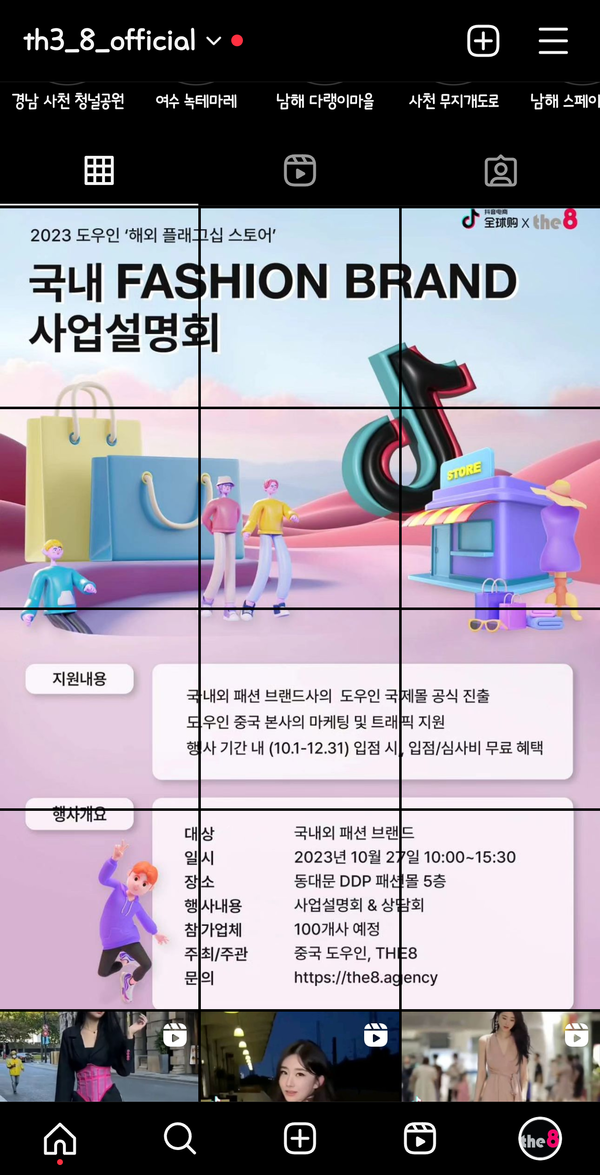 한편 이 행사의 기획과 주관을 맡은 THE8은 “그동안 한국 패션의 가치와 명성에 비해 중국 시장의 진출이 저조하고 그 가치를 제대로 인정 받지 못한 점이 늘 숙제로 남아 있었다. 그 원인은 많겠지만 각 기업들이 혼자의 힘으로 시장을 공략 함으로서 겪어야 하는 장애 때문에 좌절하고 실패한 것이라 생각한다. 그래서 THE8은 더우인 이라는 중국의 든든한 버팀목과 손을 잡고 진출 기업들의 충실한 가이드 역할은 물론 늘 동반자의 정신으로 함께 하고자 이번 행사를 주관하게 되었다”라고 말했다.