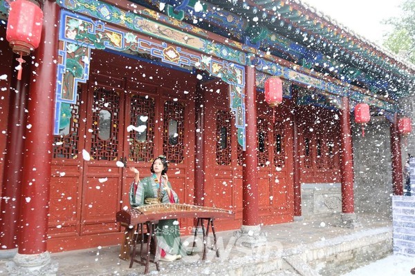 [뉴스인] 민경찬 기자 = 2일(현지시간) 중국 광시좡족자치구 난닝의 위안보위안에서 한 공연자가 인공 눈이 내리는 속에서 공연하고 있다. 따뜻한 남쪽 도시인 난닝에서는 2024년 설 연휴 동안 인공 눈 날리기 행사를 진행해 좀처럼 보기 힘든 '눈 날리는 풍경'을 감상할 수 있게 됐다.