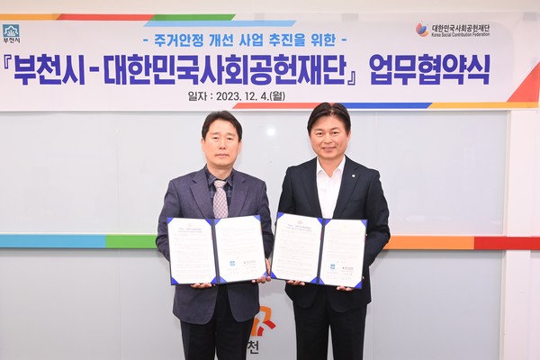 [뉴스인] 조진성 기자 = 대한민국사회공헌재단(이사장 김영배)과 부천시(시장 조용익)는 지난 4일 취약계층을 위한 주거안정 지원사업 추진을 위한 업무협약을 체결했다.