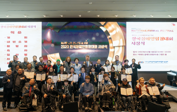 [뉴스인] 조진성 기자 = 사단법인 국제장애인문화교류협회중앙회(이사장 최공열, 이하 국장협)는 충청남도 부여군, 사단법인 한국장애인음악협회와 공동주최, 문화체육관광부와 한국수출입은행의 후원으로 지난달 16일 천안예술의전당 대공연장에서 열린 ‘제31회 세계장애인의날 기념 전국장애인합창대회‘의 성과를 축하하고 격려하기 위해 지난 1일 오전 11시 ’서울 여의도 글래드호텔‘에서 ‘제31회 세계장애인의날 기념 전국장애인합창대회 시상식’을 성황리에 성료했다.