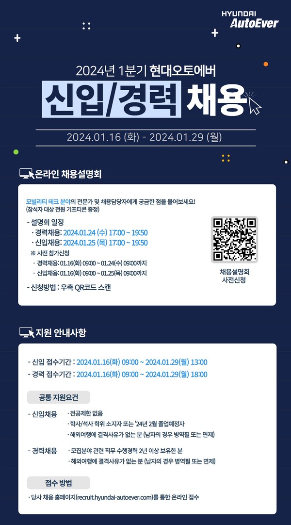 채용 분야와 전형절차 등 자세한 모집 요강은 현대오토에버 채용 홈페이지에서 확인할 수 있다.