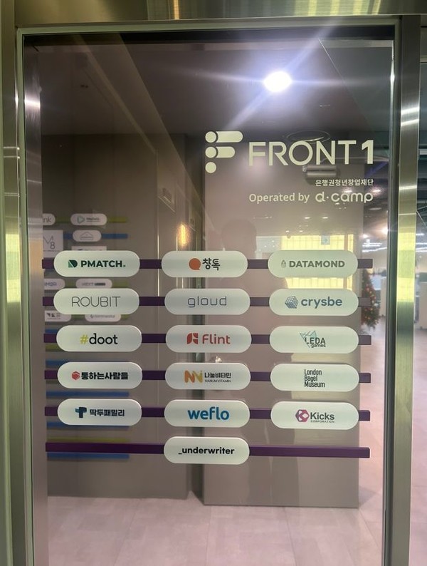 프론트원은 국내 최대 스타트업 지원 센터로, 신용보증기금과 은행권 청년창업 지원재단 디캠프가 운영중이며 창업 기업들에게 다양한 지원과 인프라를 제공하며, 혁신적인 비즈니스 모델을 추진하고 있는 기업들에게 입주 기회를 부여한다.