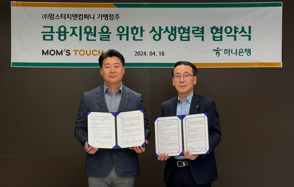 이번 협약은 서울시 중구에 위치한 맘스터치앤컴퍼니 본사에서 이진영 맘스터치앤컴퍼니 가맹사업실장과 전우홍 하나은행 부행장을 비롯한 양사 관계자들이 참석한 가운데, 맘스터치 가맹점에 대한 원활한 금융 지원을 위해 양사의 유기적 협력 체계를 구축하고자 진행됐다.