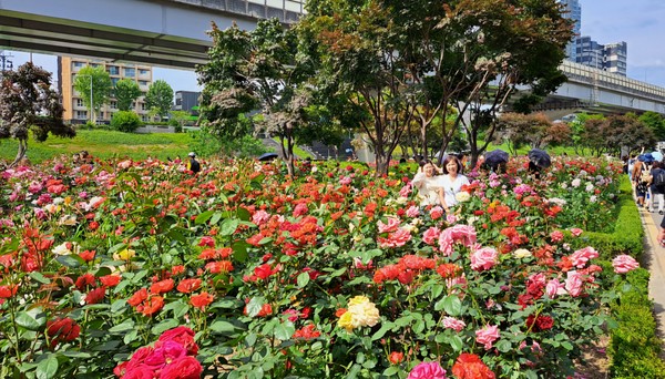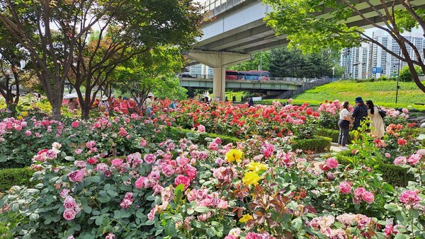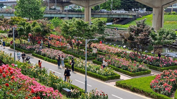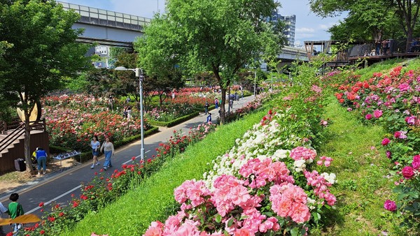 [뉴스인] 이재영 기자 =중랑 장미공원은 2005년 중랑천 둔치 공원화 사업으로 중랑천 길을 따라 다양한 품종의 장미를 구획별로 심기 시작하면서 오랜 세월이 흘러 아름다운 장미공원이 되었다.