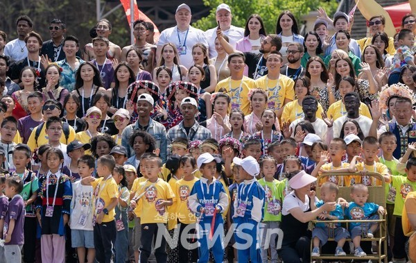 [뉴스인] 민경찬 기자 = 2일(현지시간) 중국 윈난성 푸얼시 모장하니족 자치현에서 '제18회 모장 북회귀선 국제 쌍둥이 축제'가 열려 지역 및 여러 나라에서 온 1천여 쌍의 쌍둥이가 모여 기념 촬영을 하고 있다. 지난 1일 개막한 이 축제는 오는 5일까지 이어진다. (사진=신화통신)