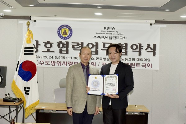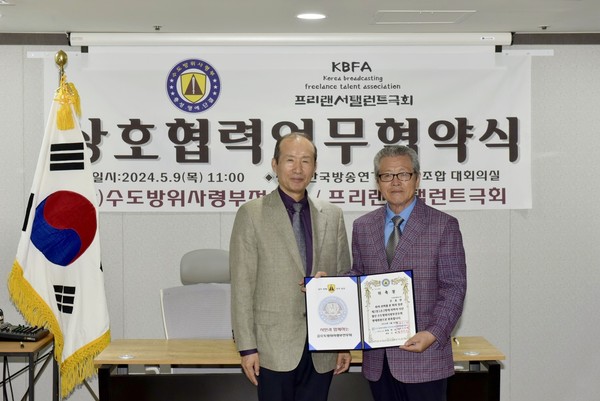 [뉴스인] 조진성 기자 = 프리랜서탤런트극회(회장 김명국)는 지난 9일 오전 11시 여의도소재 한국방송연기자노동조합 회의실에서 수도방위사령부전우회재난안전봉사단(수방사전우회)과의 상호업무협약을 체결했다고 밝혔다.