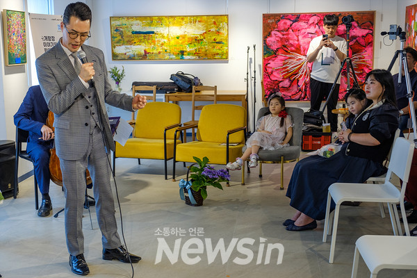 [뉴스인] 민경찬 기자 = 인천 대표 실내악단 i-신포니에타(단장 조화현)가 25일 인천 중구 복합문화공간 '화안'에서 '개항장 이야기와 함께하는 하우스 콘서트'를 열어 테너 정진성이 뮤지컬 지킬 앤드 하이드의 OST '지금 이 순간'을 연주하고 있다.