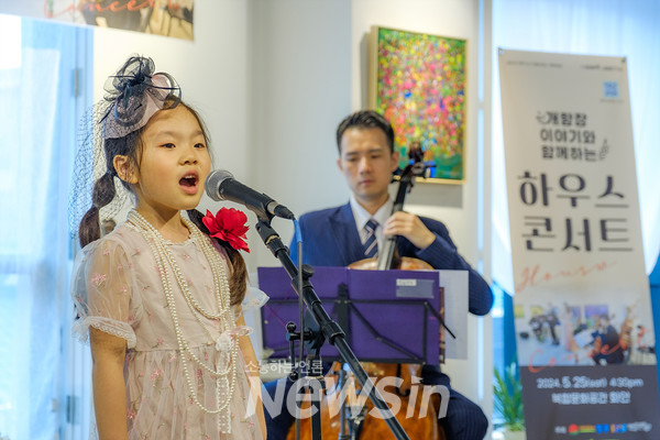 [뉴스인] 민경찬 기자 = 인천 대표 실내악단 i-신포니에타(단장 조화현)가 25일 인천 중구 복합문화공간 '화안'에서 '개항장 이야기와 함께하는 하우스 콘서트'를 열어 최연소 단원 박소현(7) 어린이가 '친구가 되는 멋진 방법'을 들려주고 있다.