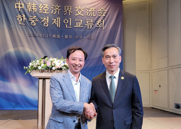 [뉴스인] 27일 오후 서울 장충동 앰배서더 서울 풀만 호텔 그랜드볼룸에서 한중경제인교류회가 열려 최명규 뉴스인미디어 대표(왼쪽)가 런훙빈 중국국제무역촉진위원회(CCPIT) 회장과 기념 촬영을 하고 있다.